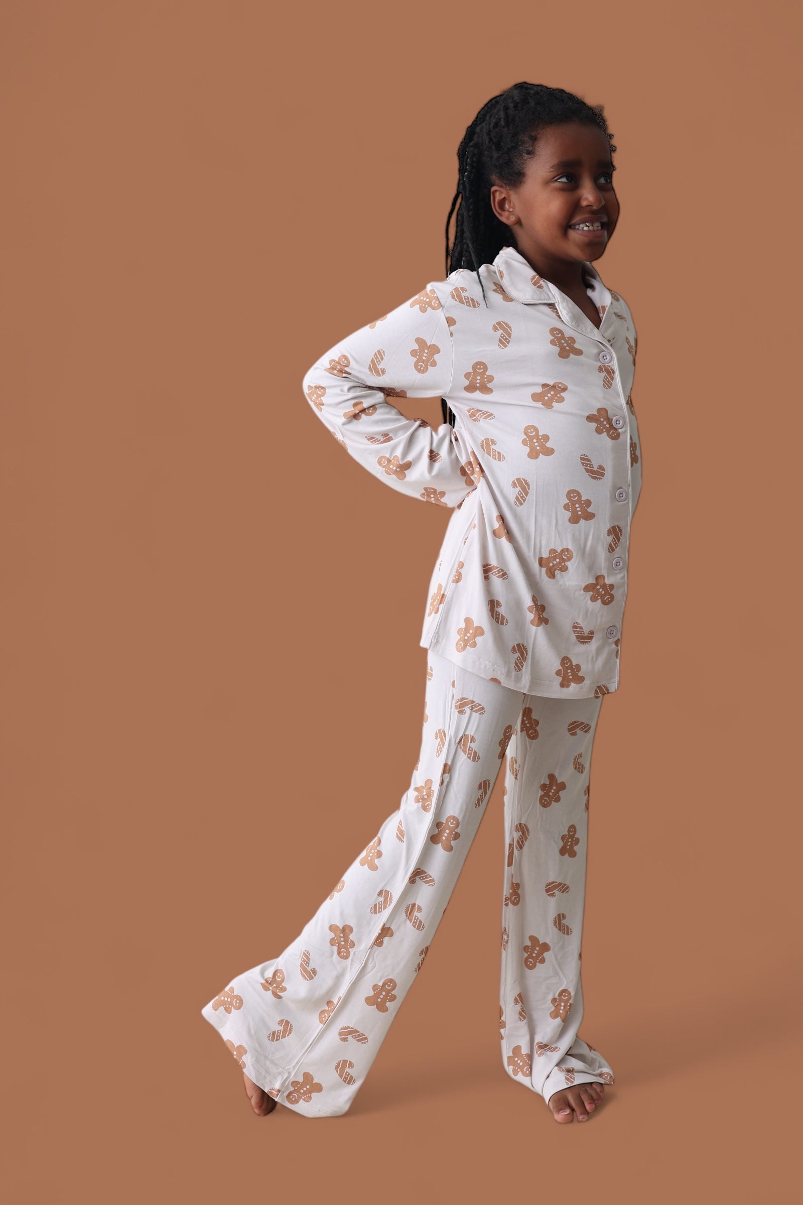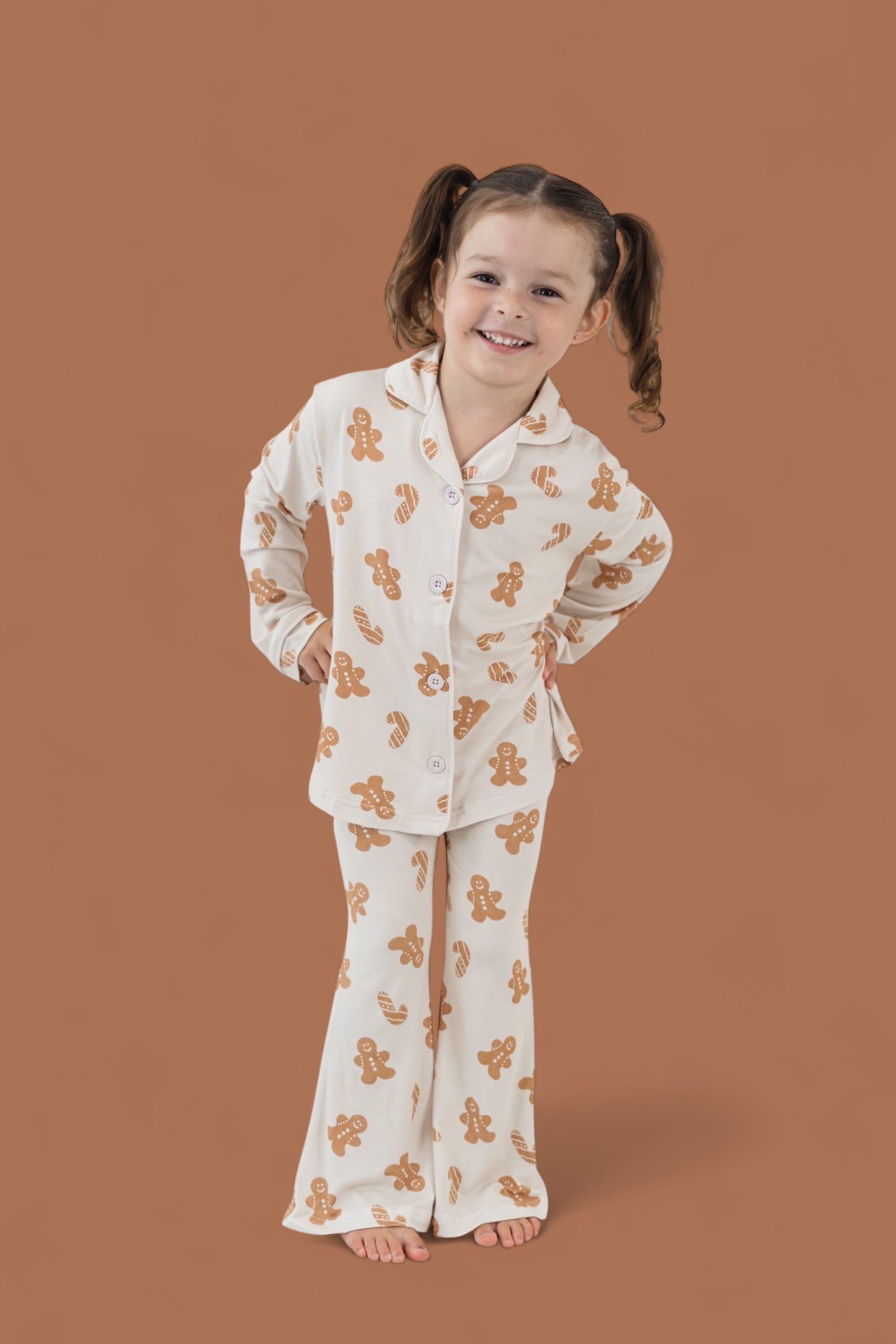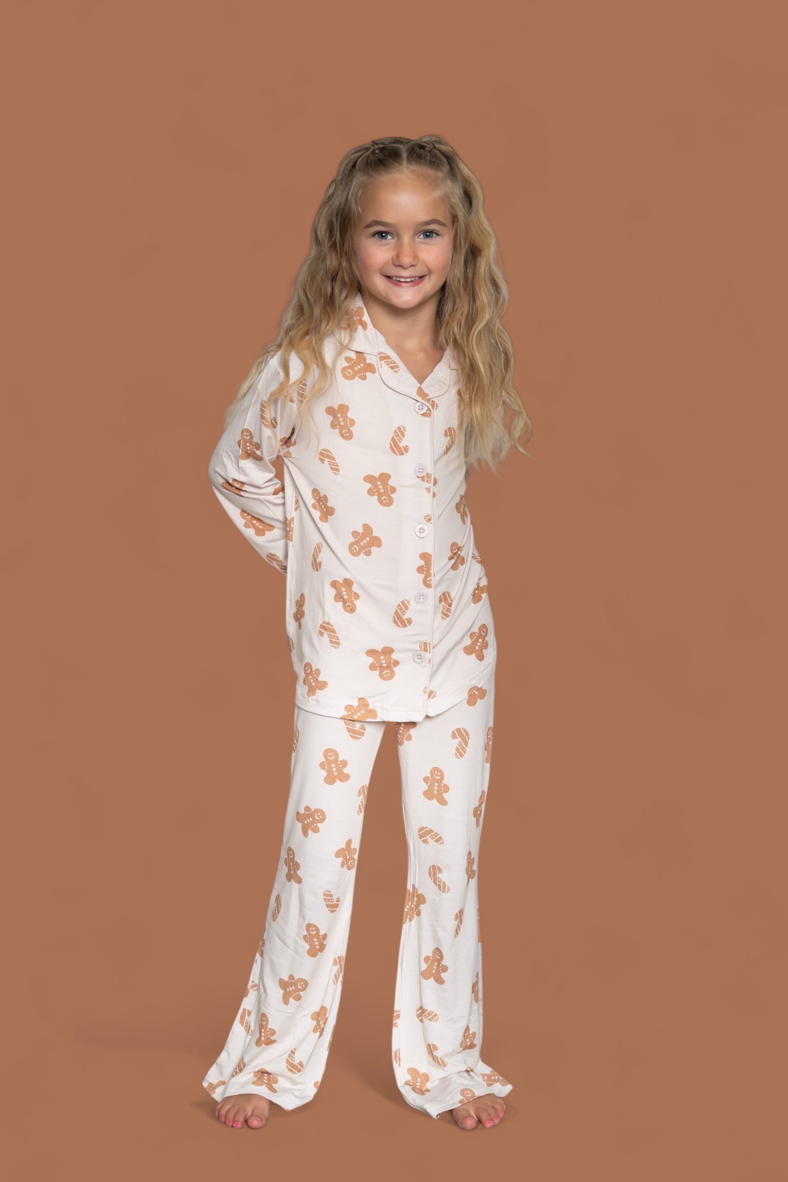 Made for sugar, spice, and everything nice, the Cookie Crew Dream Girl’s Flare Set is a holiday treat she’ll love to wear! Featuring the sweetest gingerbread print and playful flare pants, this set is perfect for cookie baking, movie marathons, and dancing through the holidays in comfort and style. Soft, stretchy, and totally twirl-friendly—this set is what festive dreams are made of!