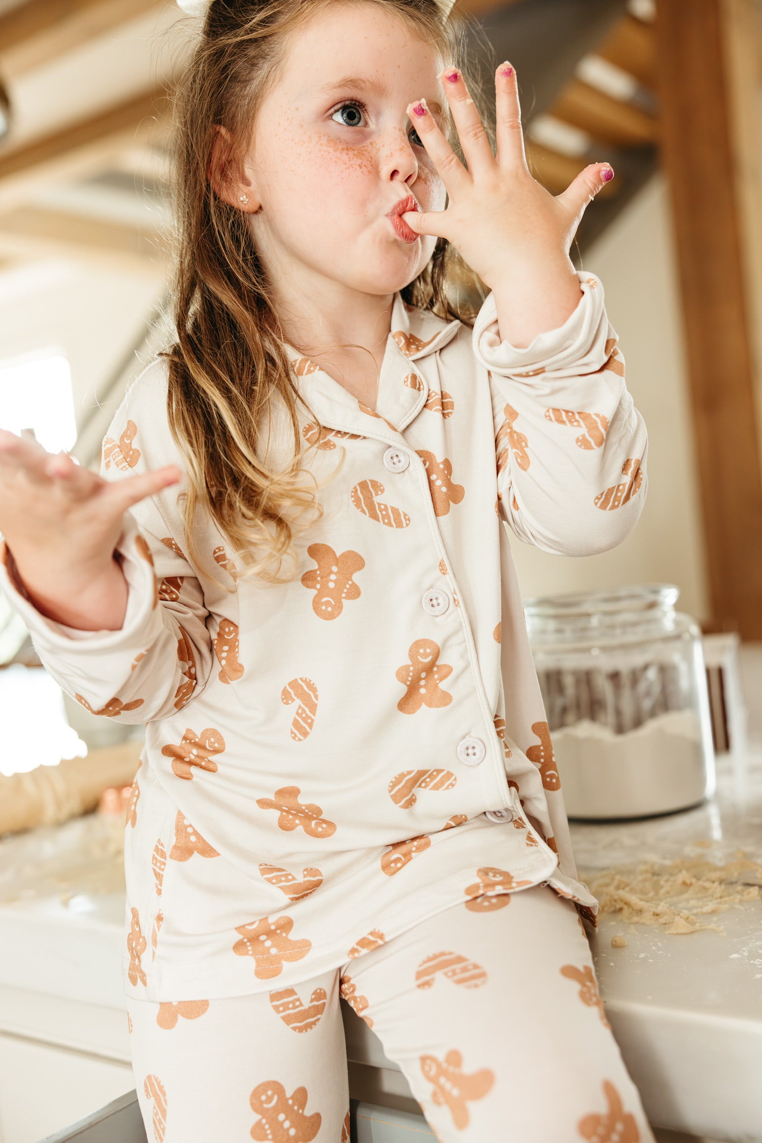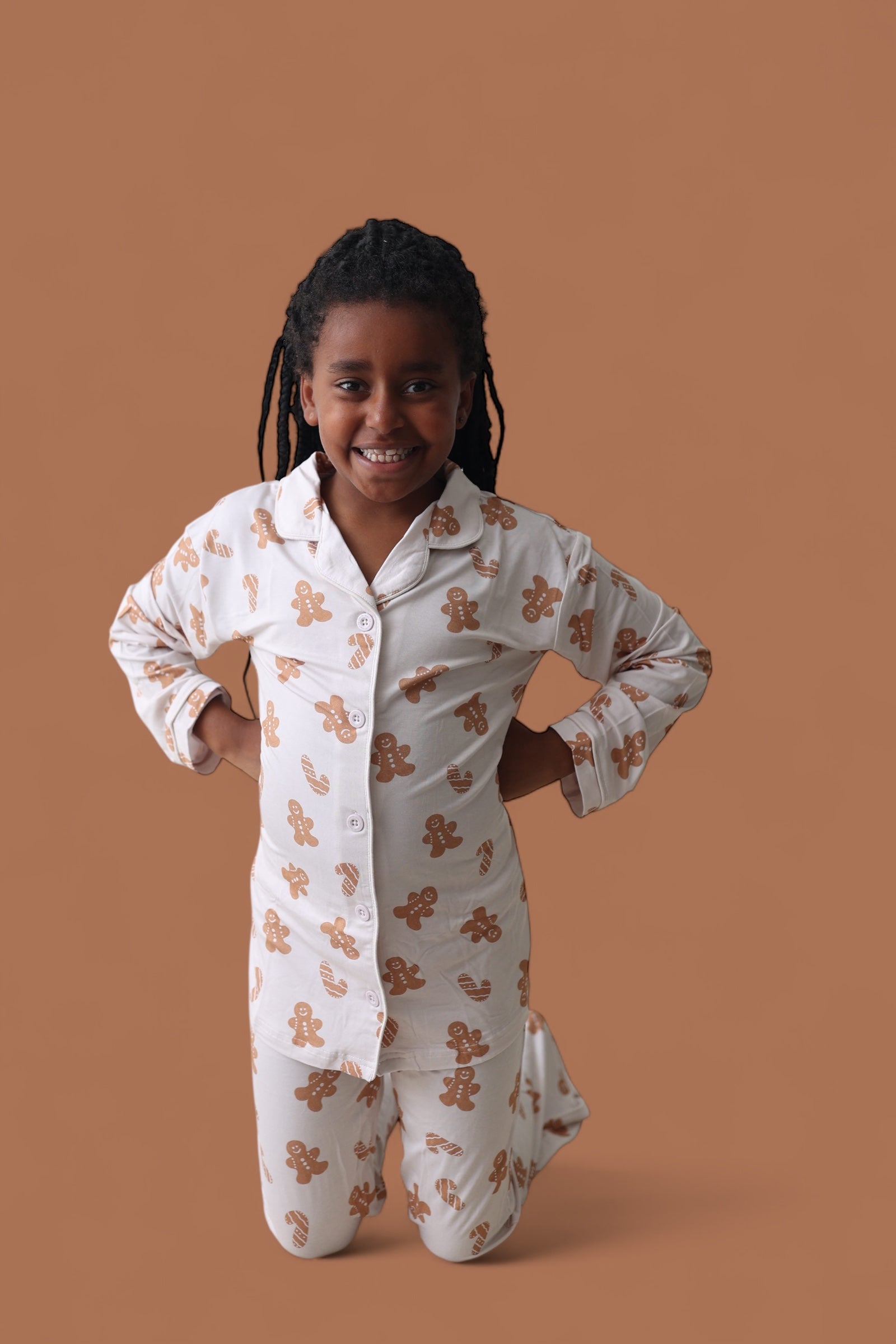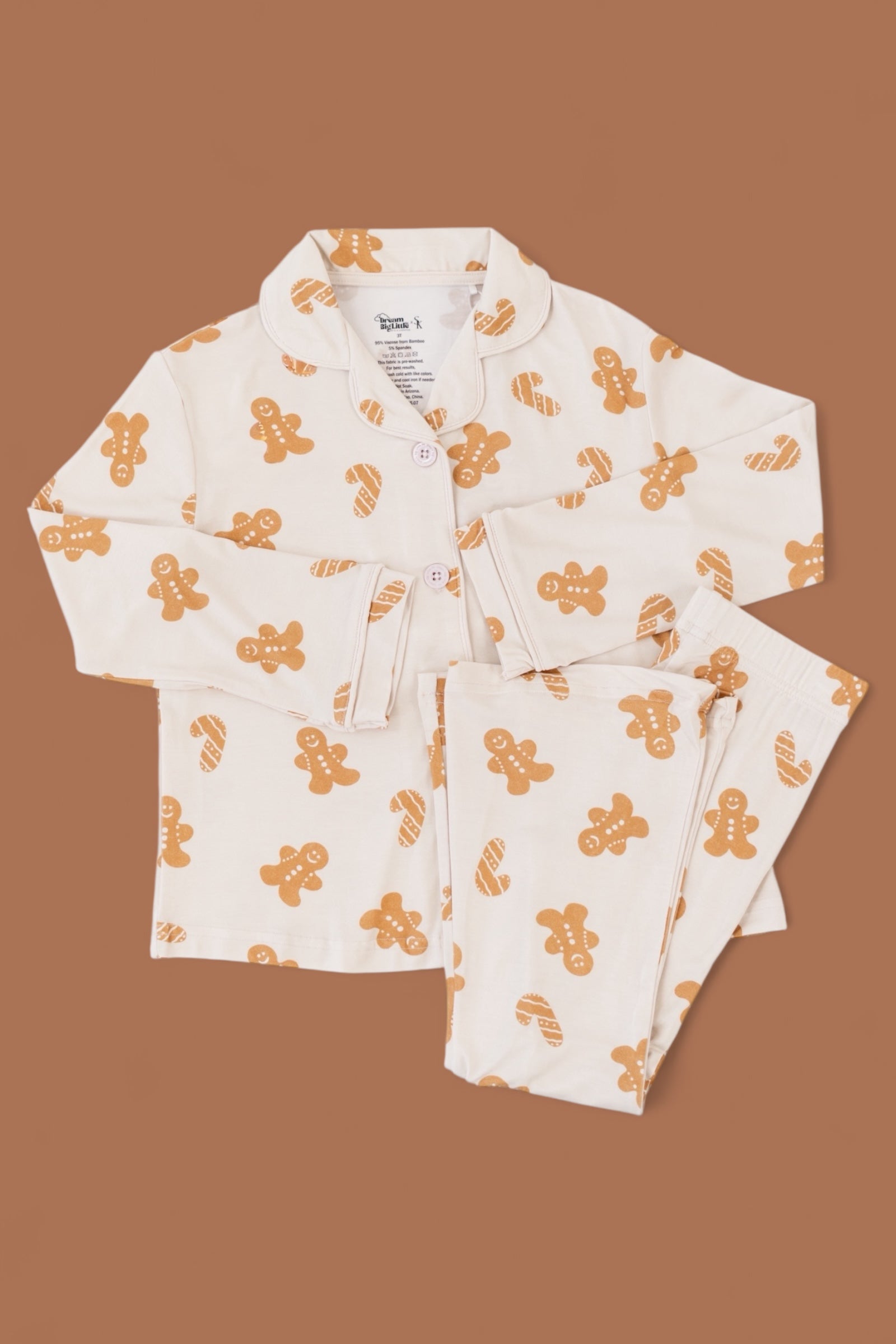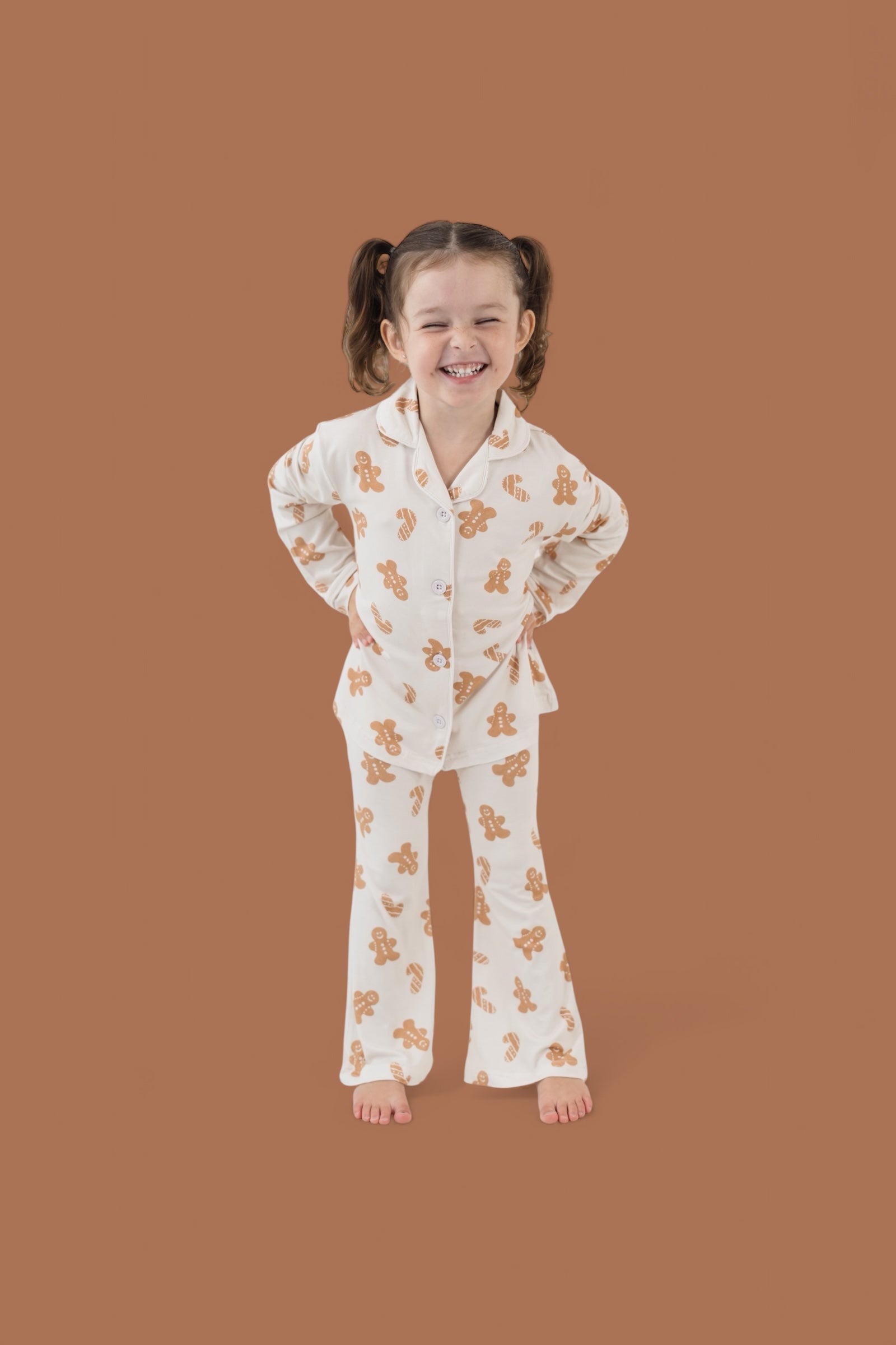 Made for sugar, spice, and everything nice, the Cookie Crew Dream Girl’s Flare Set is a holiday treat she’ll love to wear! Featuring the sweetest gingerbread print and playful flare pants, this set is perfect for cookie baking, movie marathons, and dancing through the holidays in comfort and style. Soft, stretchy, and totally twirl-friendly—this set is what festive dreams are made of!