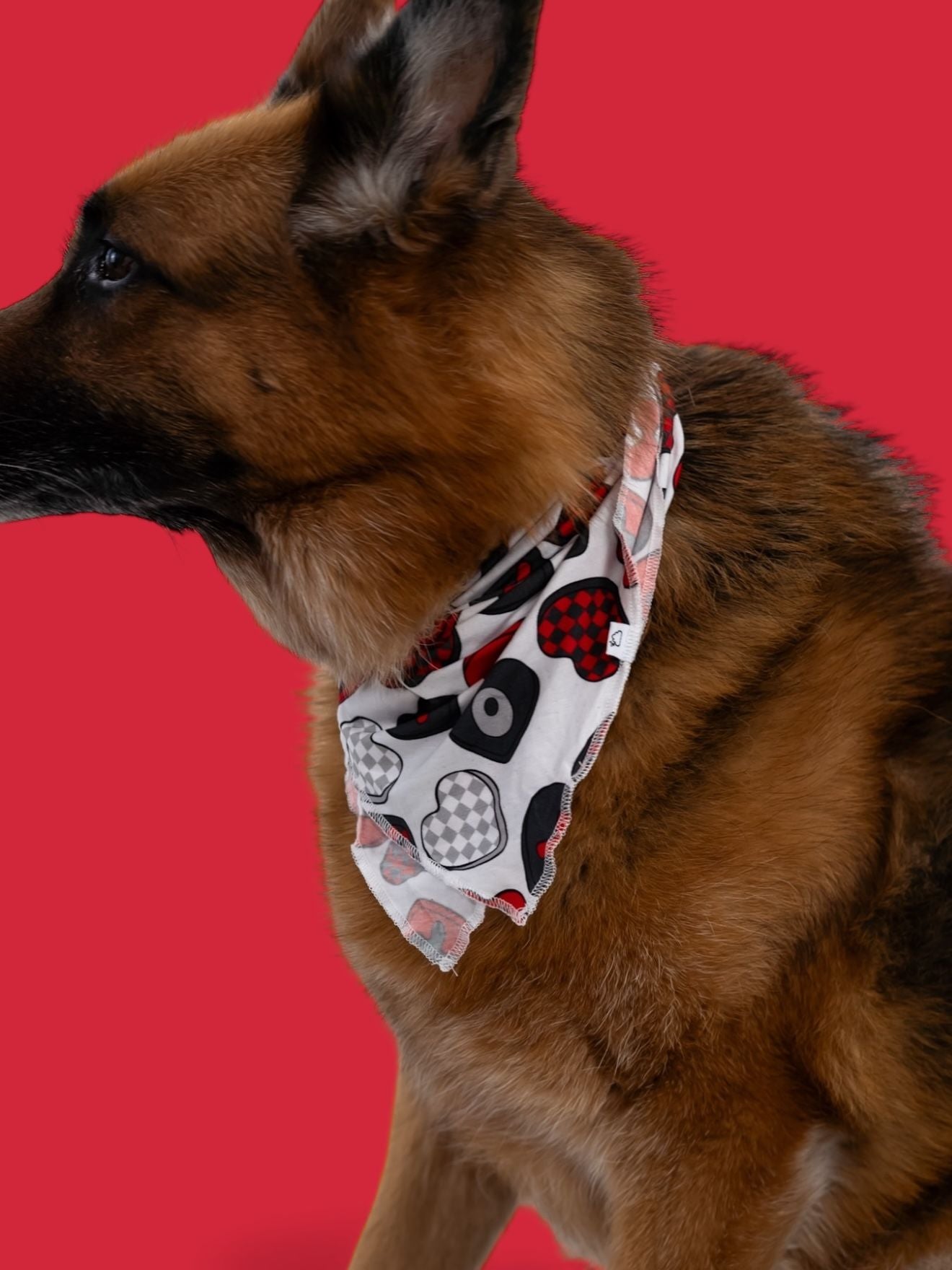 Let your pup show off their XOXO style! The Cross My Heart Dog Bandana features our bold heart + X print in shades of red, black, and white on buttery-soft bamboo fabric. Lightweight, breathable, and easy to tie, it’s perfect for walks, photo ops, and snuggles with your four-legged valentine.